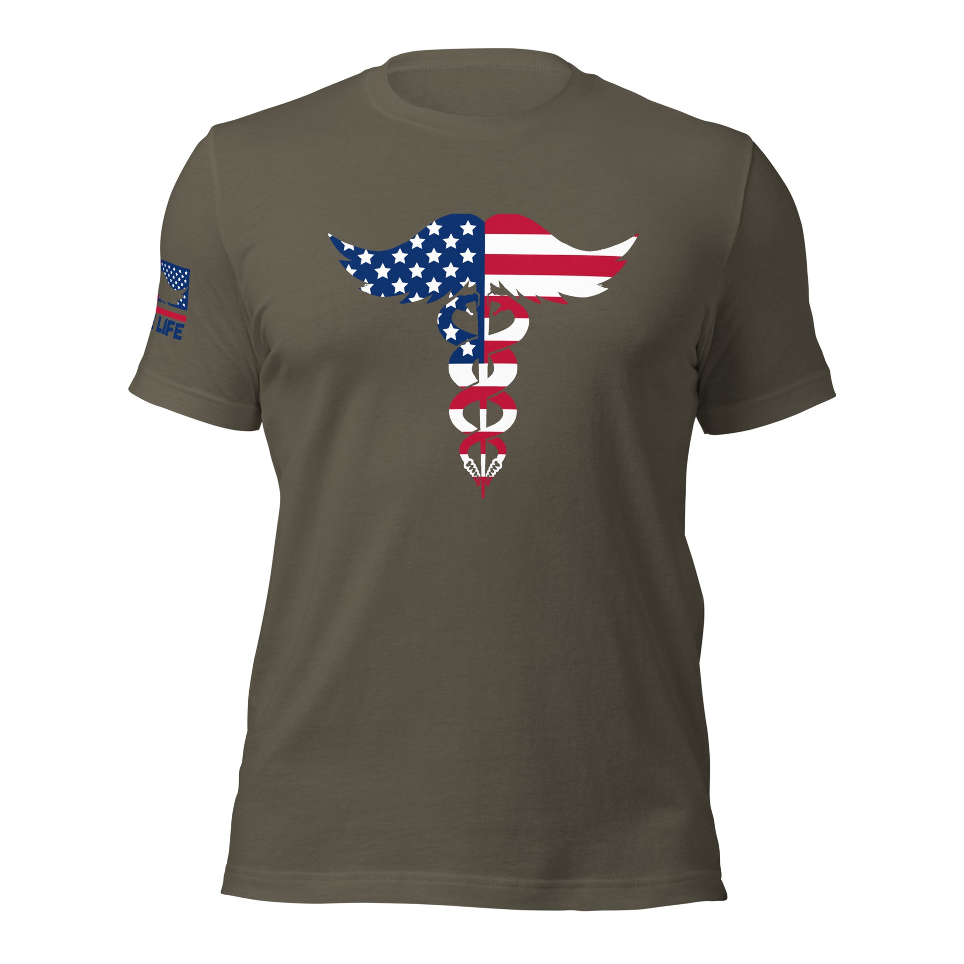 This soft and comfortable tee displays the Murse Life Rattlesnake Logo and shows that you are proud to be American as it displays the logo with the Stars and Stripes!