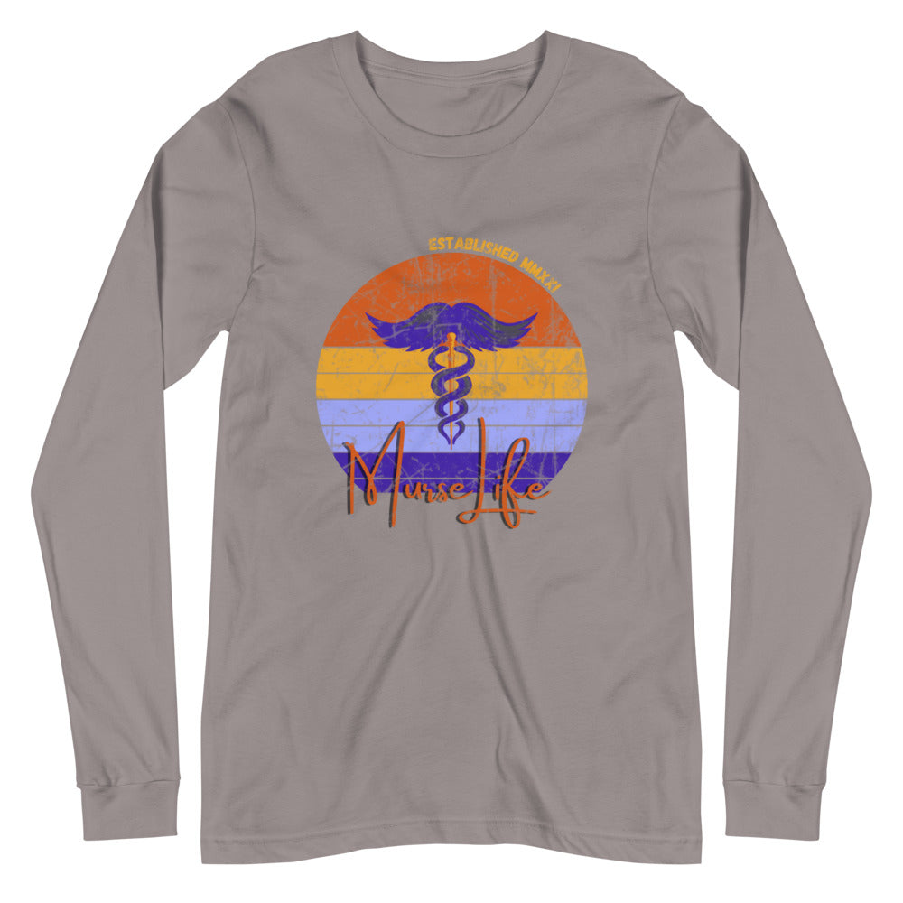 This vintage long sleeve is comfortable and lightweight but will still keep you warm. The new distressed sunset logo is in the front and displays the Murse Life logo.